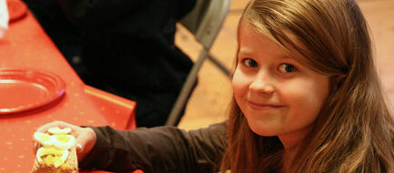Å sitte ved julepyntet langbord var til å få julestemning av. Rød duk, levende lys, hvite servietter. Etter bordverset «I Jesu navn går vi til bords..» gikk praten om maten, skoleåret og juleferien. Med annenhver stor og liten, og med lærerne spredt innimellom, opplevdes et julekoselig skolefellesskap på tvers av alder, klasser og roller. De store kunne hjelpe og passe på de litt mindre, og i noen tilfeller motsatt.
